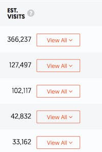 In addition, you will see the search volume (vol), a website's ranking position (position), estimated visits (EST. Visits) and SEO difficulty (SD).