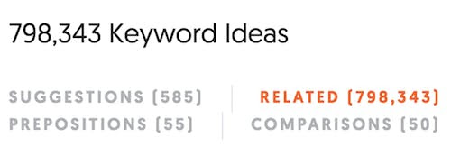 Now I want you to click on the "related" tab as this will show you a really big list of keywords related to the one you just typed in.