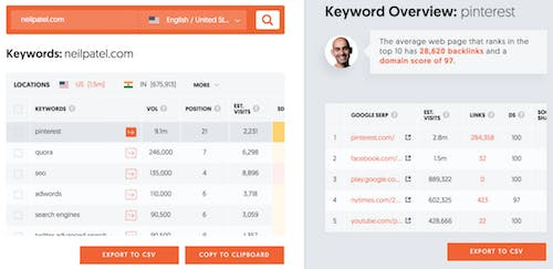 Once you do that, you'll see a long list of keywords that drive traffic to that specific page. Go through all of the keywords and export them to CSV.