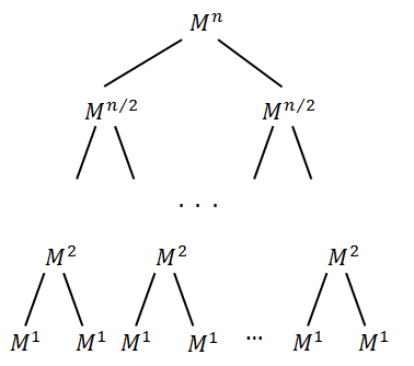 So, to calculate M^{n}Mn matrix, we should calculate M^{n/2}Mn/2 matrix and multiply it by itself. To calculate M^{n/2}Mn/2 we would have to do the same with M^{n/4}Mn/4 and so on.