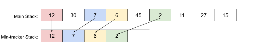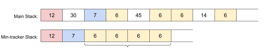This way, the new minimum would now be the top of the min-tracker Stack. If you're confused about why this is, think back to the previous approach, and remember when the minimum changed.