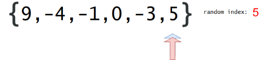 The Fisher-Yates algorithm is remarkably similar to the brute force solution. On each iteration of the algorithm, we generate a random integer between the current index and the last index of the array. Then, we swap the elements at the current index and the chosen index - this simulates drawing (and removing) the element from the hat, as the next range from which we select a random index will not include the most recently processed one. One small, yet important detail is that it is possible to swap an element with itself - otherwise, some array permutations would be more likely than others. To see this illustrated more clearly, consider the animation below:
