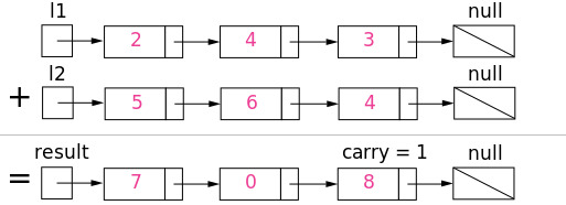 public ListNode addTwoNumbers(ListNode l1, ListNode l2) {