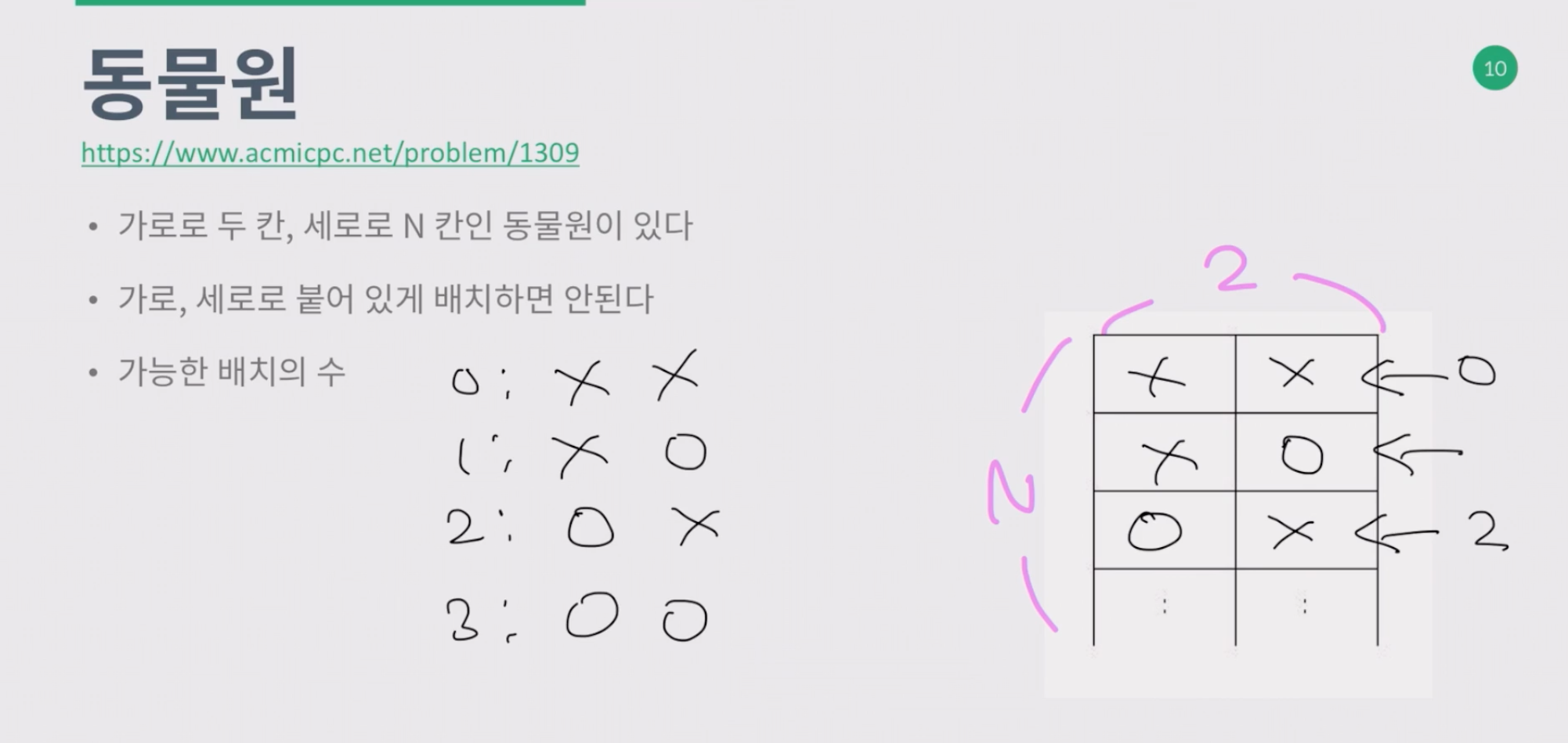 동물원의 첫째줄에 사자를 배치하는 경우가 아닌...