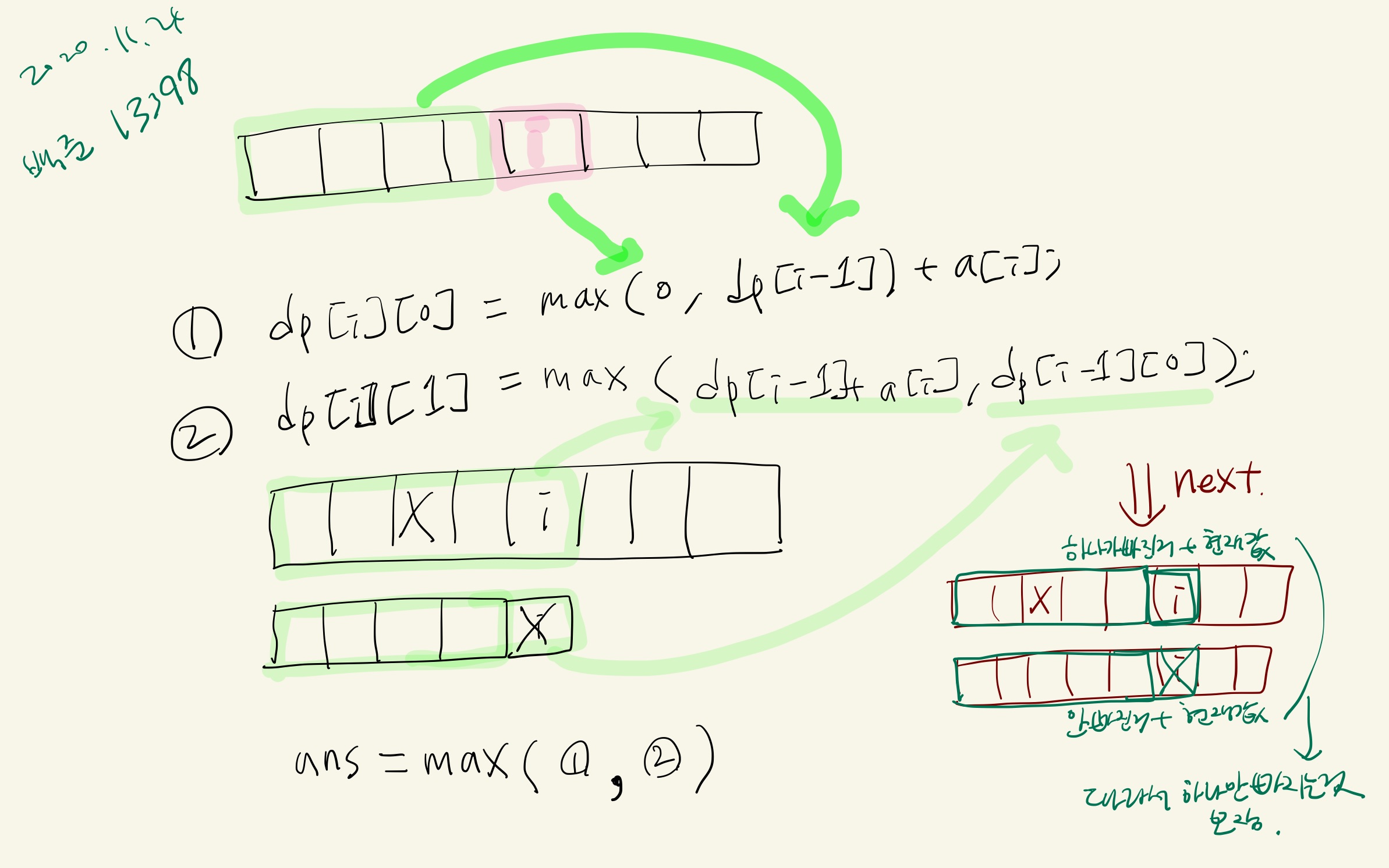 윗줄은 제거않는버전, max(아무것도 안더한거, 지금까지더한거)+현재값