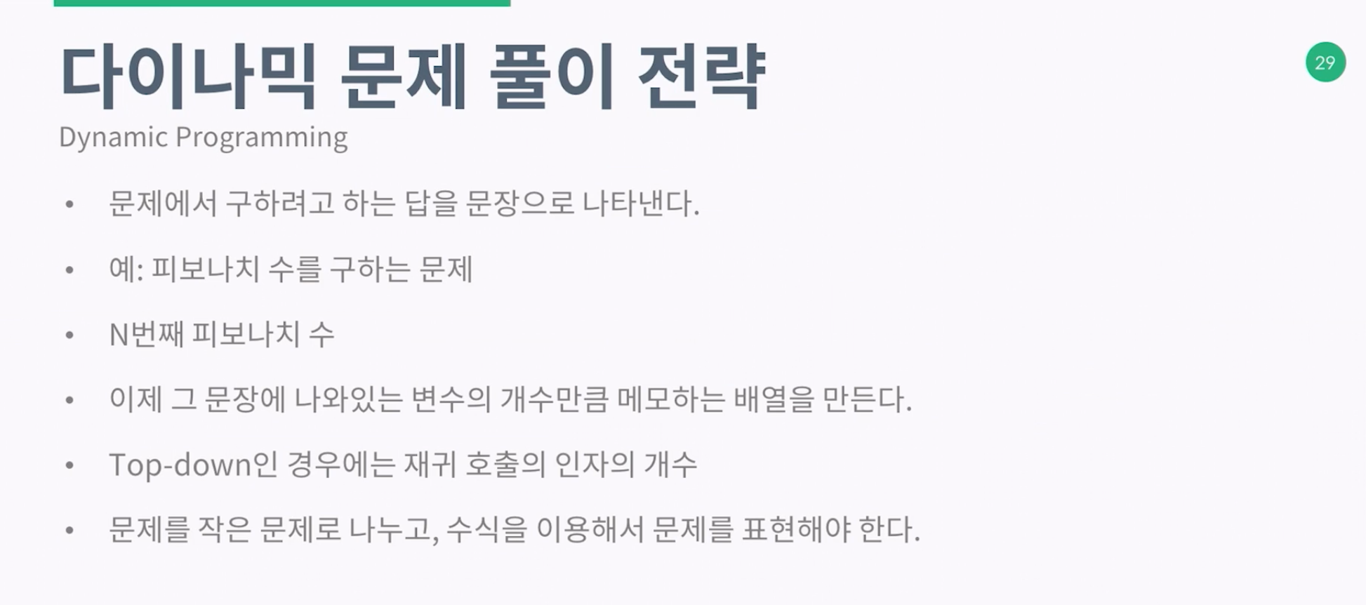 바텀업 -> 작은문제부터 차례대로 푼다.