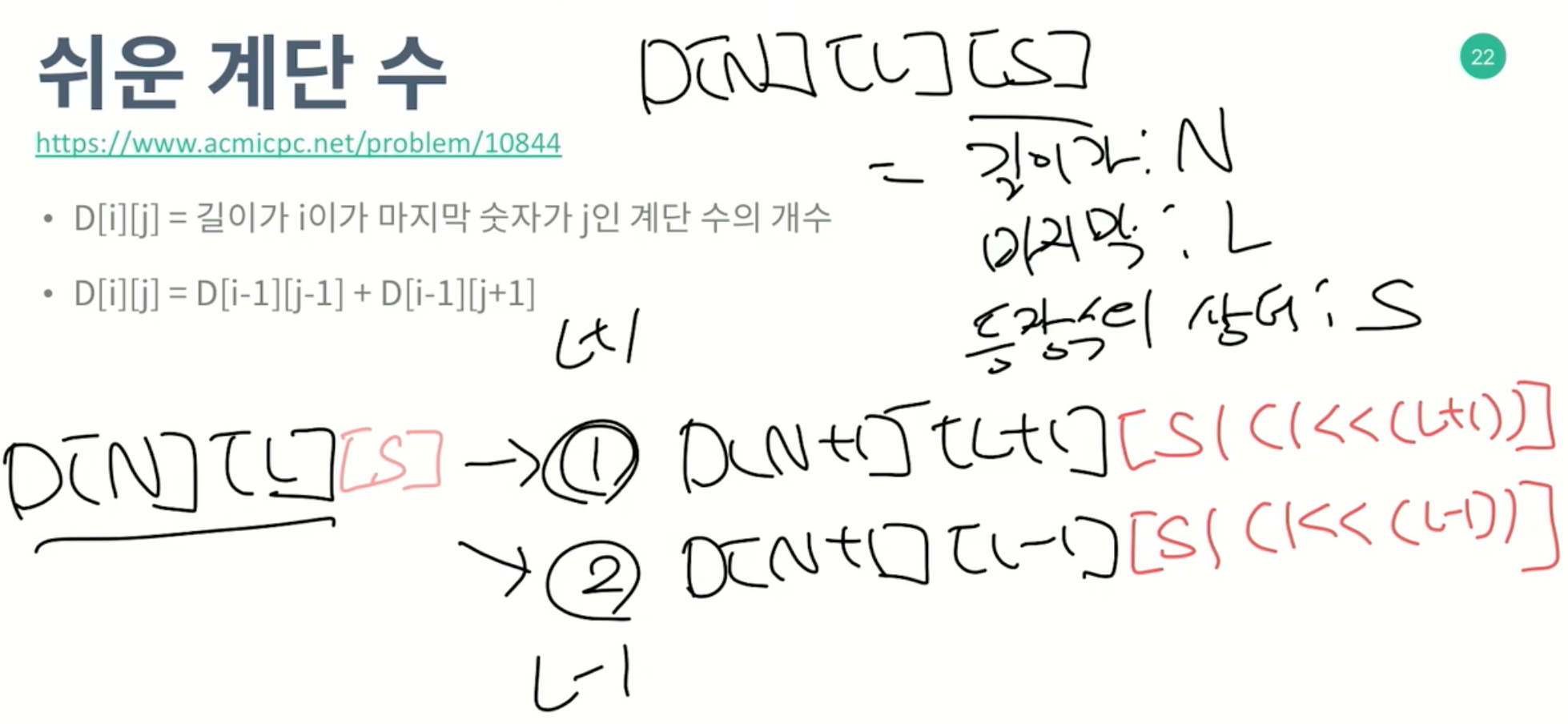 상태: S에서 i를 뺌, 비트마스크로는 S - (1<< i) 이것을 좀 더 올바르게 쓴다면 s&~(1 << i)