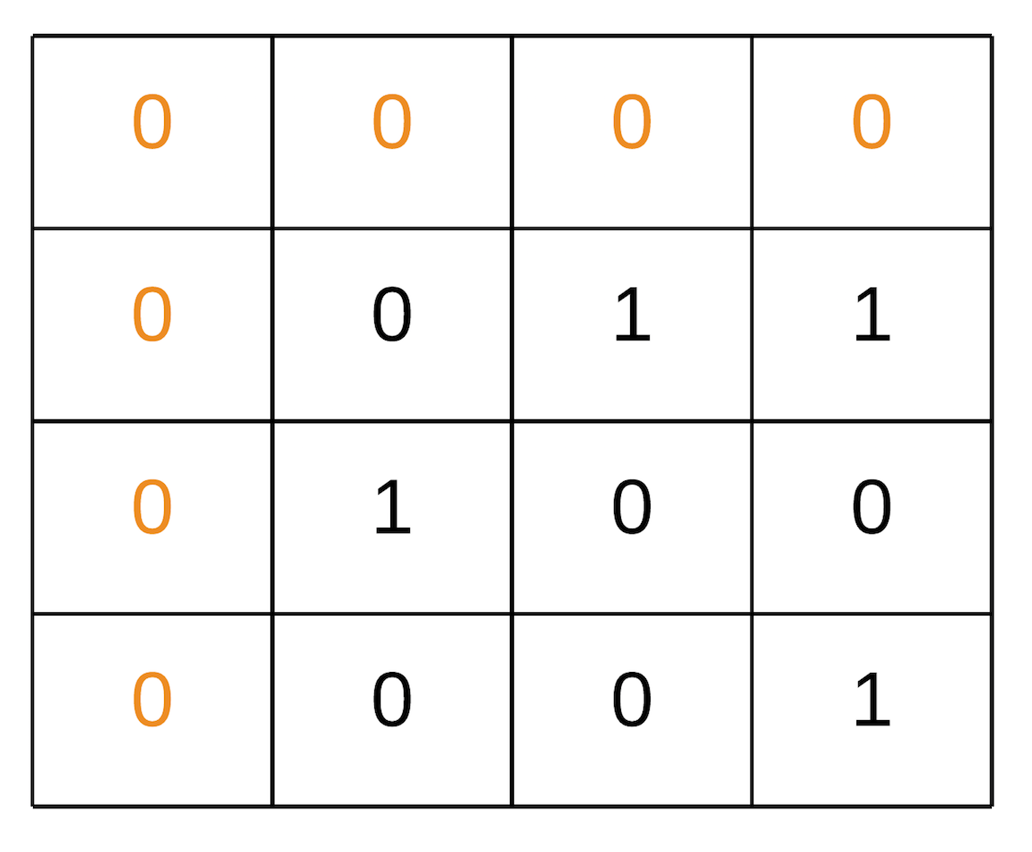 # If an element is zero, we set the first element of the corresponding row and column to 0