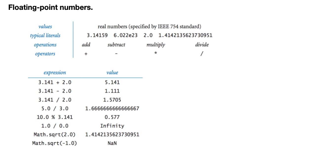 float: The float data type is a single-precision 32-bit IEEE 754 floating point. Its range of values is beyond the scope of this discussion, but is specified in the Floating-Point Types, Formats, and Values section of the Java Language Specification. As with the recommendations for byte and short, use a float (instead of double) if you need to save memory in large arrays of floating point numbers. This data type should never be used for precise values, such as currency. For that, you will need to use the java.math.BigDecimal class instead. Numbers and Strings covers BigDecimal and other useful classes provided by the Java platform.