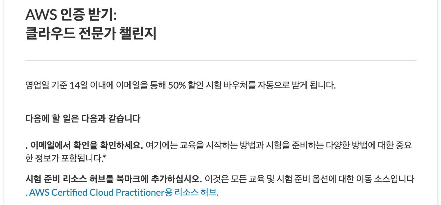 [여기서 잠깐] 챌린지를 통해 50% 바우처를 받고, AWS의 무료 강의를 통해 집에서 온라인으로 자격증을 취득한 후기는 이 글의 하단에 링크 하였습니다.