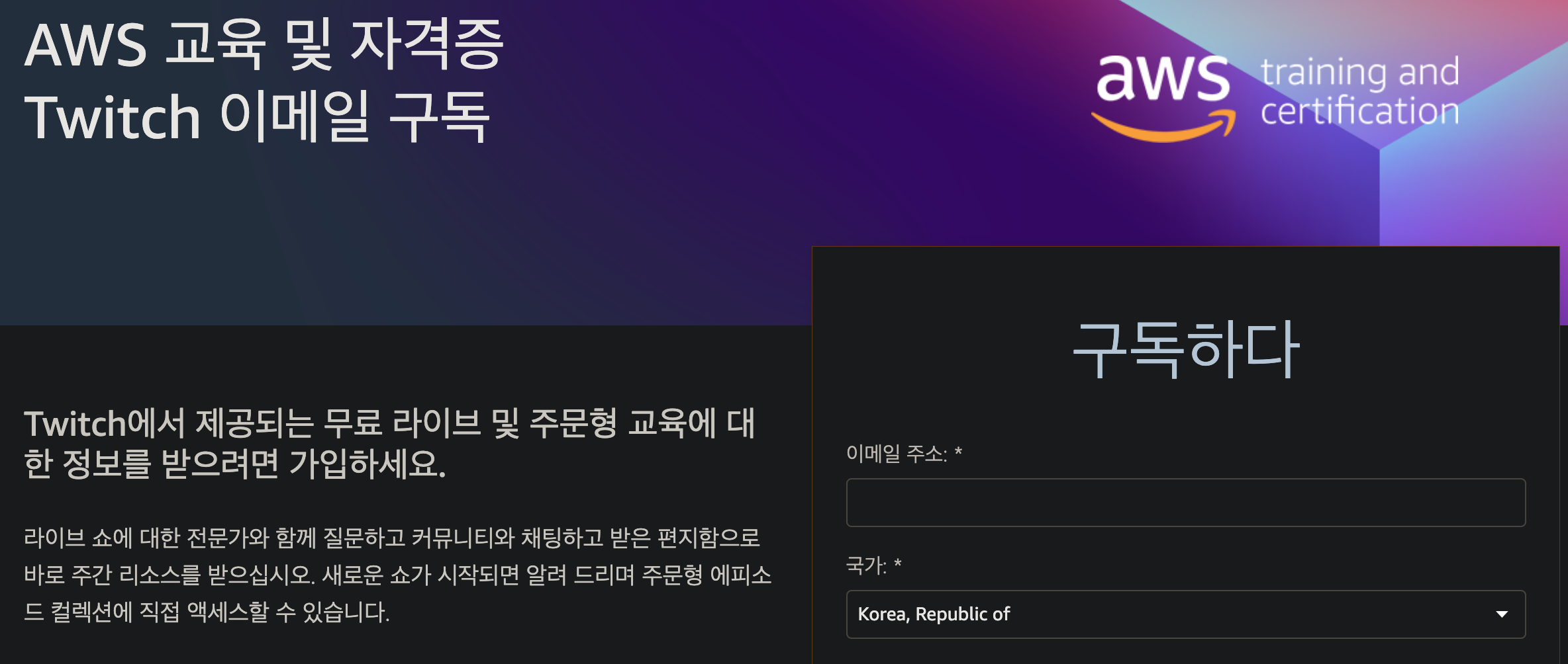 AWS Certification 여정을 시작하기로 결정하셨다니 기쁩니다! 등록하면 리소스 허브에서 무료 교육 및 시험 준비 권장 사항에 액세스할 수 있으며 AWS Certification을 추적하는 데 도움이 되는 격주 이메일 팁을 받을 수 있습니다.