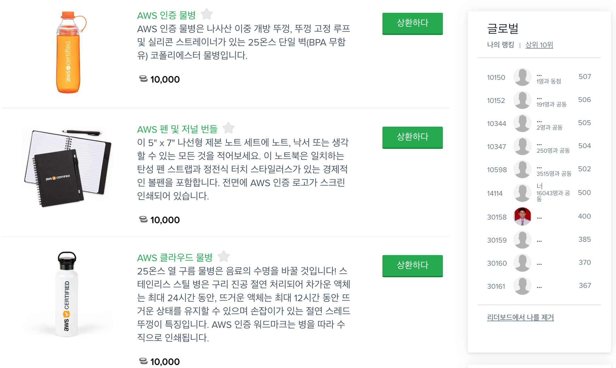 AWS 자격증 합격 혜택을 살펴보겠습니다. 합격을 하고 나면 여러 이메일이 오지만, 우선 자격증 홈페이지에 들어가면 합격 시 주어지는 혜택 리스트를 볼 수 있습니다.