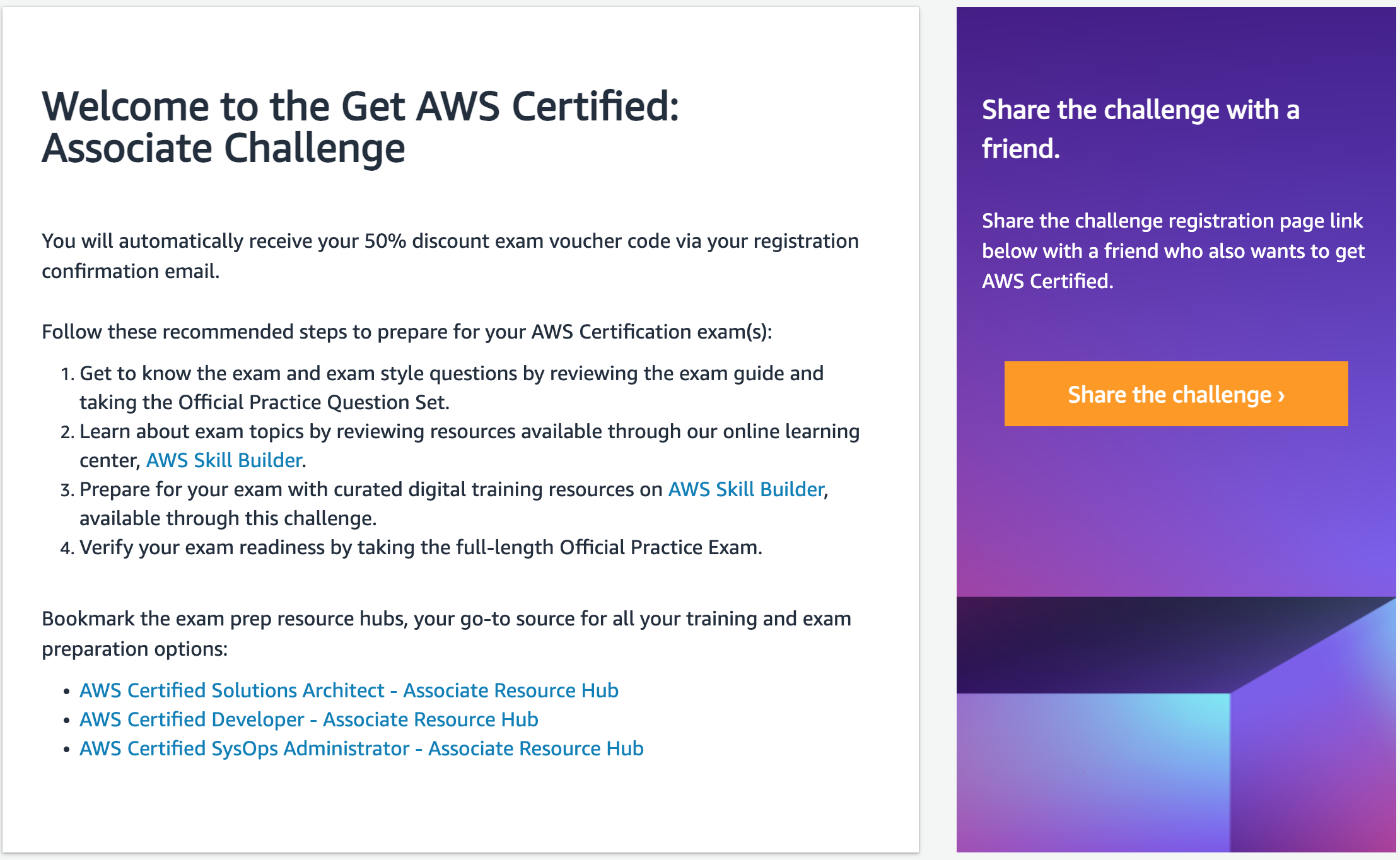AWS 자격증 할인 바우처 수령을 위한 AWS 어소시에이트 자격증 챌린지 등록 바로가기