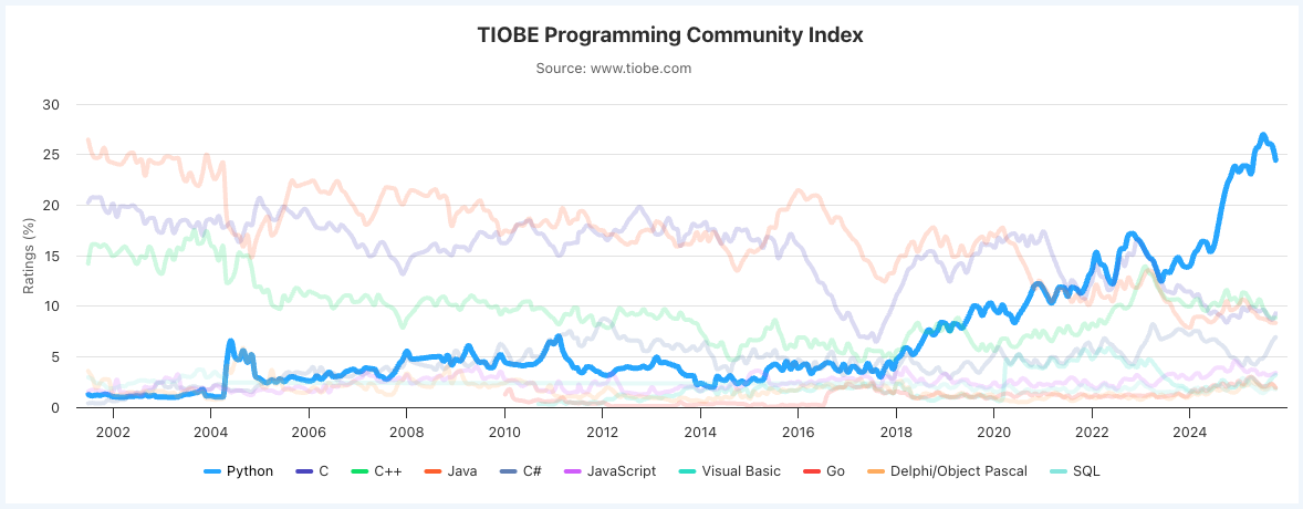 2025년 현재 TIOBE에서 줄리아의 순위는 30위 이며, 2022년 보다는 순위가 낮아졌습니다.