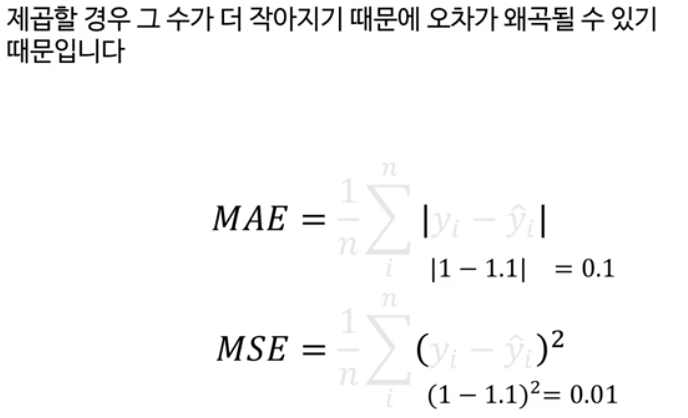 (정답과 예측값의 차이의 '절댓값'을 평균냄)