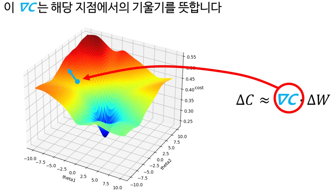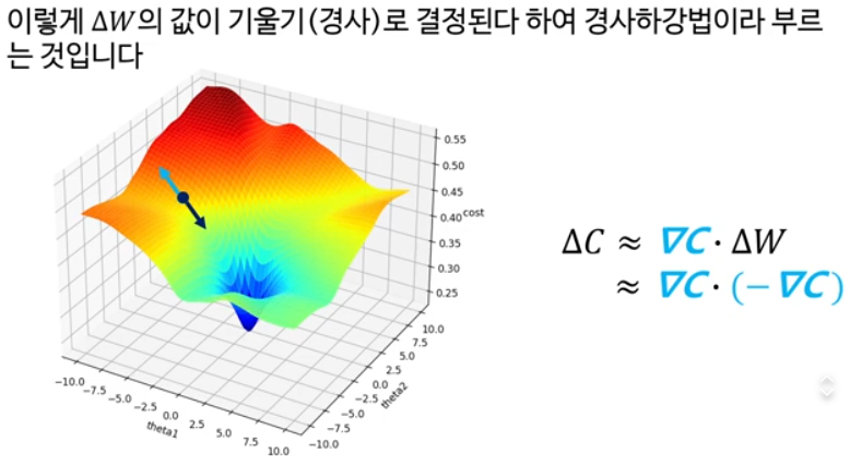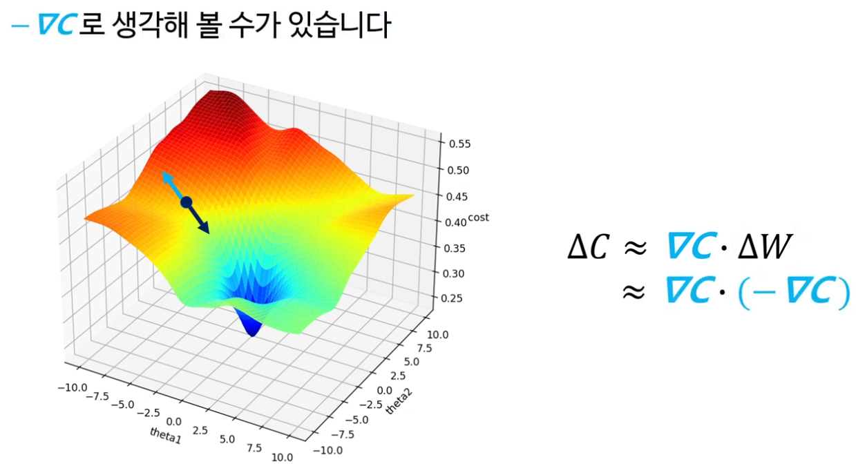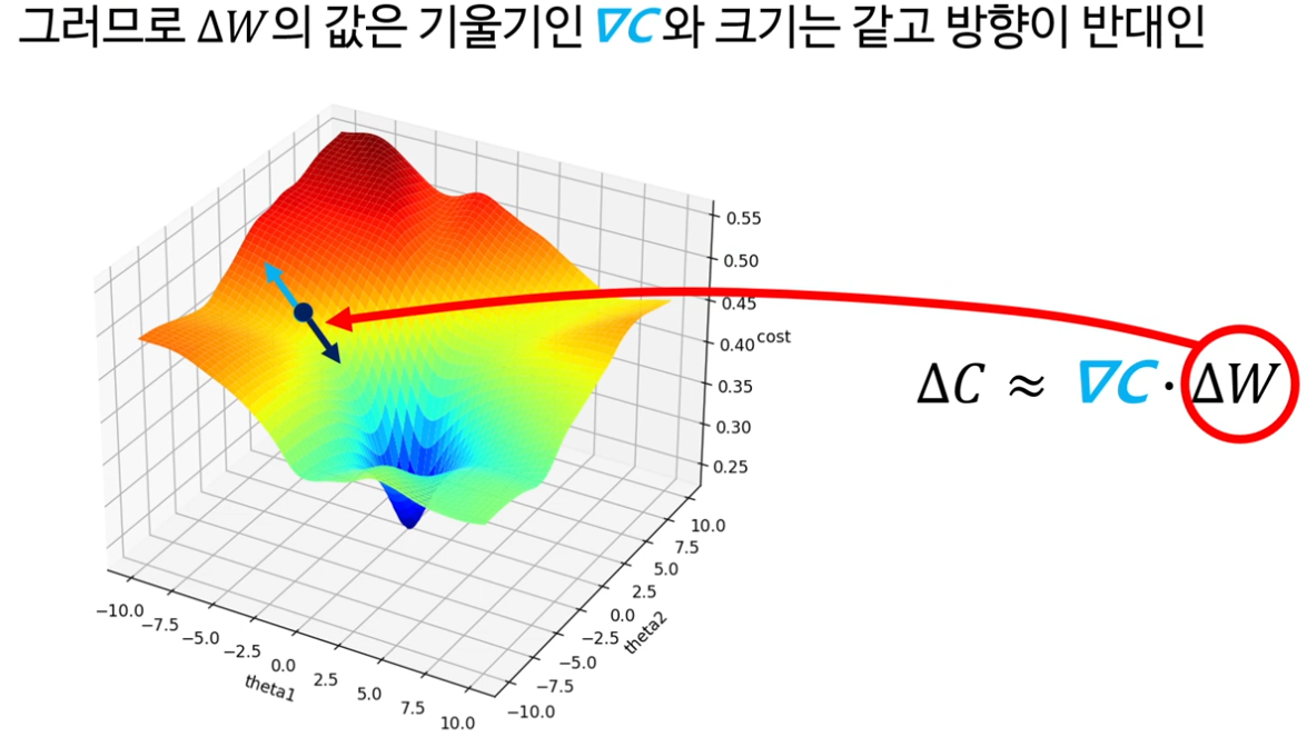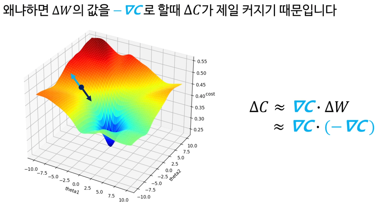 이런 수학적 증명 과정까지 다 알필요는 없지만, 이 증명에 따르면 결국 경사하강법의 핵심은