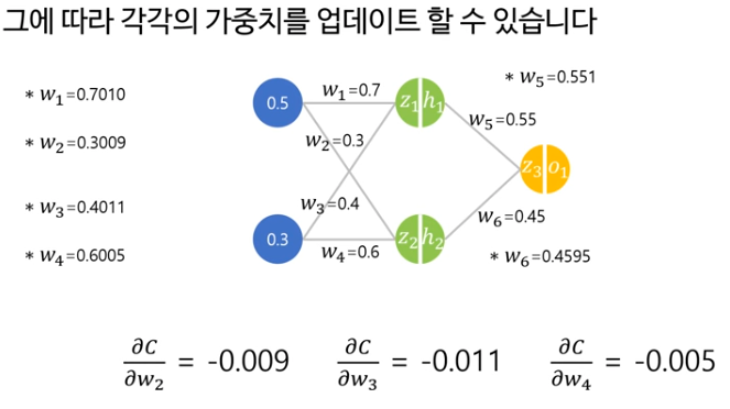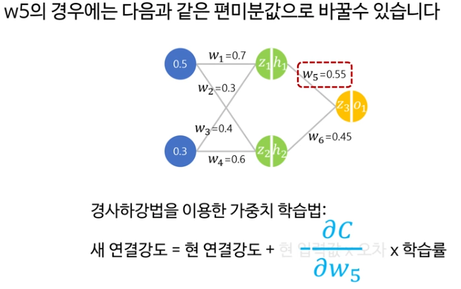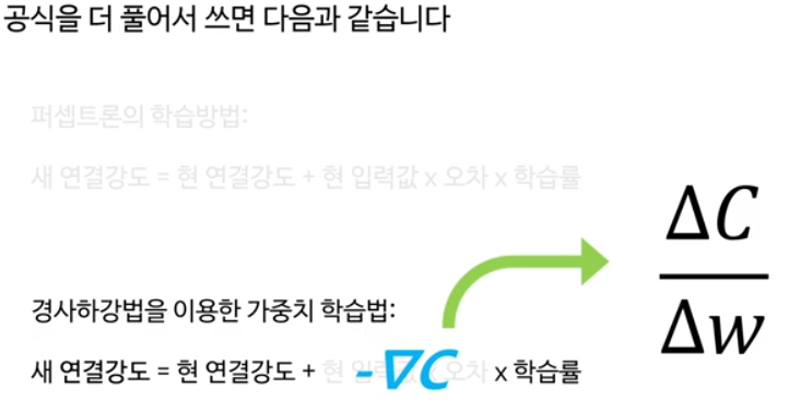경사하강법을 이용한 가중치 학습법도 개념은 동일합니다.