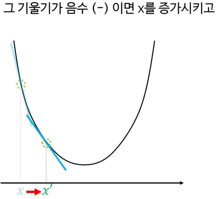 손실함수 오차가 얼마나 줄어드느냐는, 결국 손실함수의 기울기 값에 비례한다는 것을 보여줍니다.