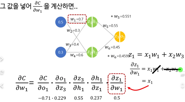 역전파알고리즘의 핵심은 편미분과 체인룰