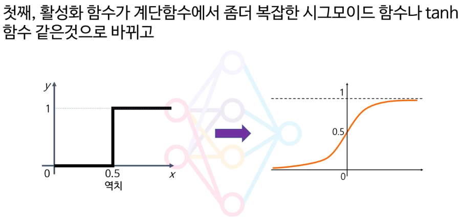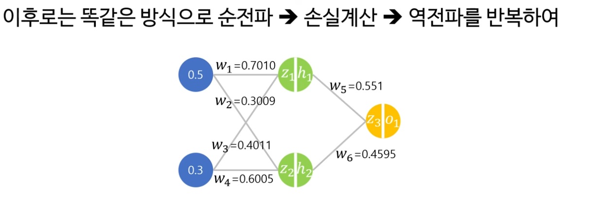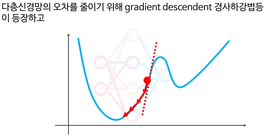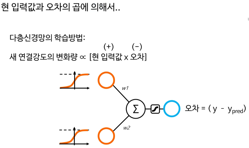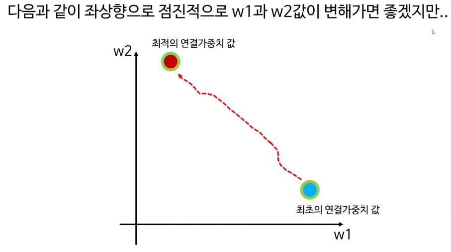 즉, 단순히 입력값 기반으로 하던것을 손실함수의 기울기로 연결강도를 수정. 일반적이고 효율적이고 발전된 방법인 최적의 연결가중치를 찾아가는 방법. 지금도 계속 발전 중