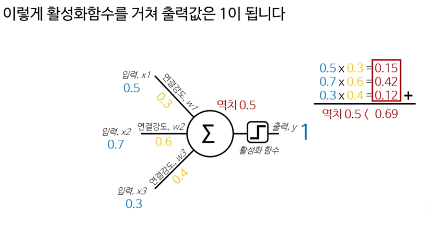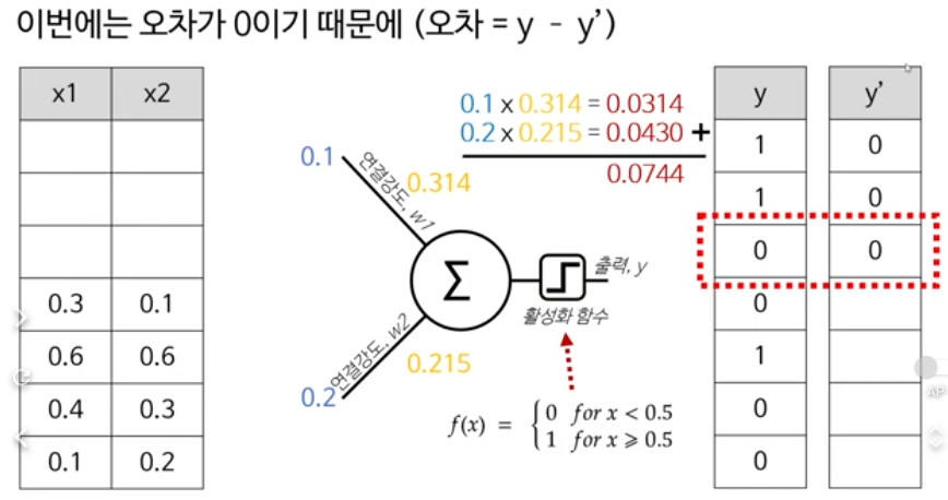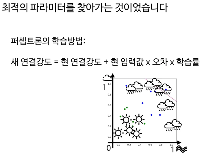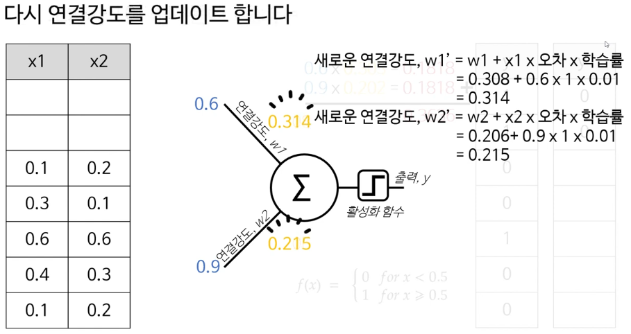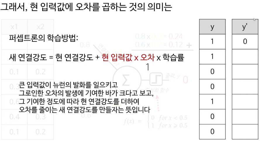 퍼셉트론은 새 연결강도와 현 입력값의 관계