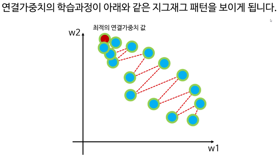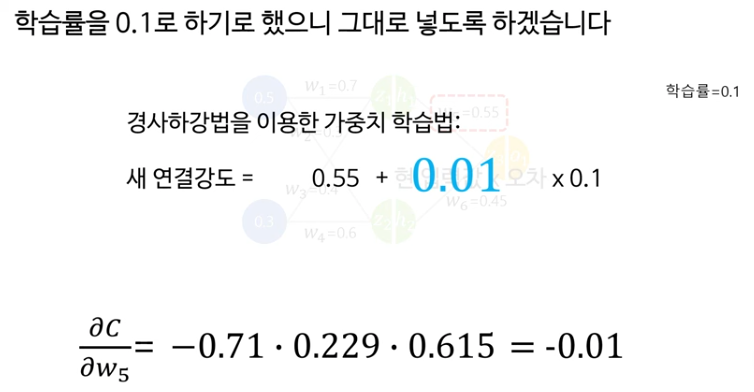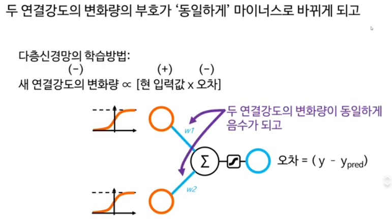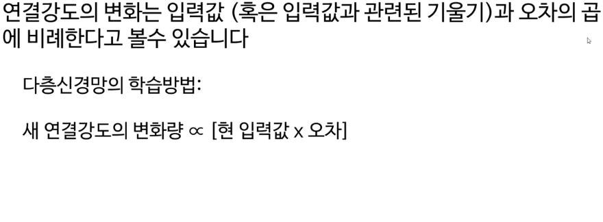 손실함수의 기울기가 클수록 연결강도의 변화량도 커집니다.