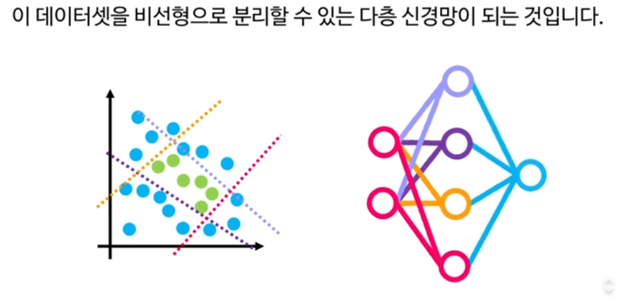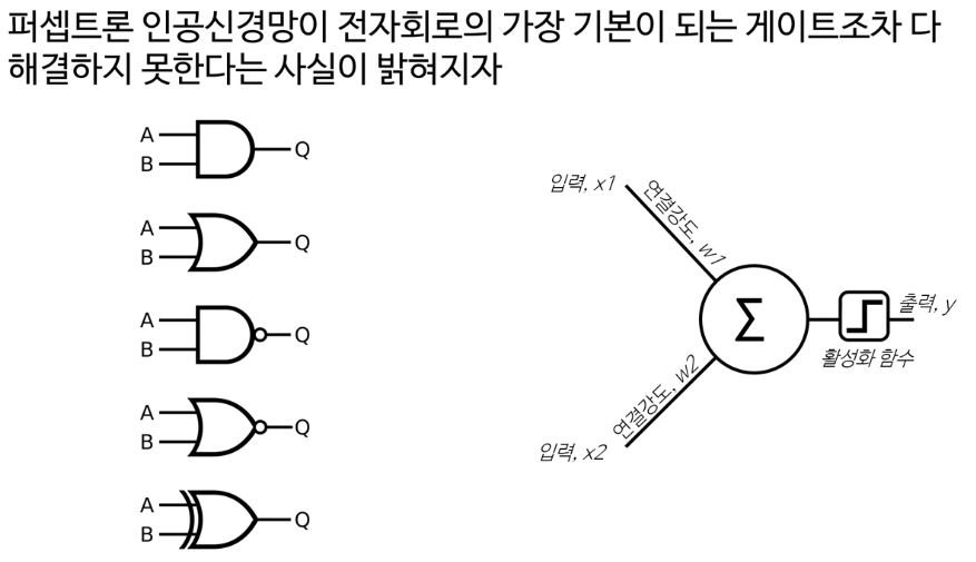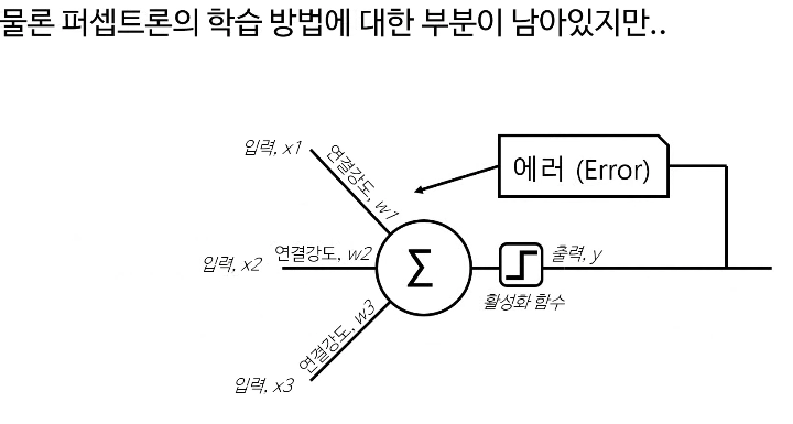 여기서 퍼셉트론의 한계도 함께 언급됩니다. 퍼셉트론 단일층으로는 XOR 같은 비선형 문제를 해결할 수 없으나, 여러 층을 쌓은 다층 퍼셉트론(Multilayer Perceptron; MLP)에서는 이 한계를 극복할 수 있습니다.