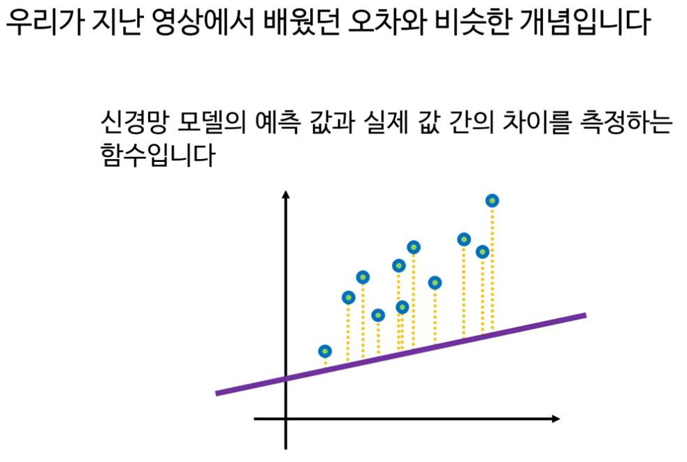 손실함수란? 지난 영상에서 배웠던 오차와 비슷한 개념