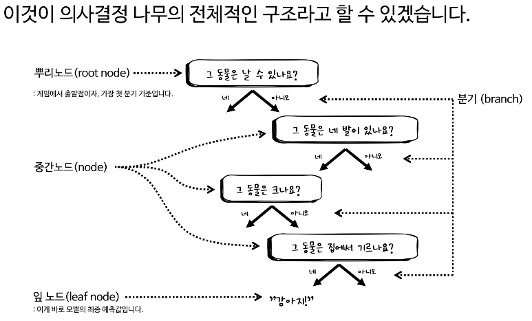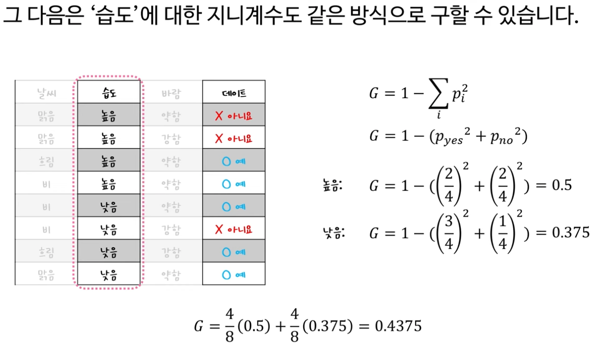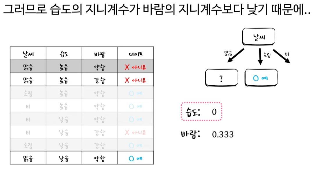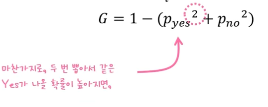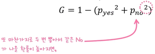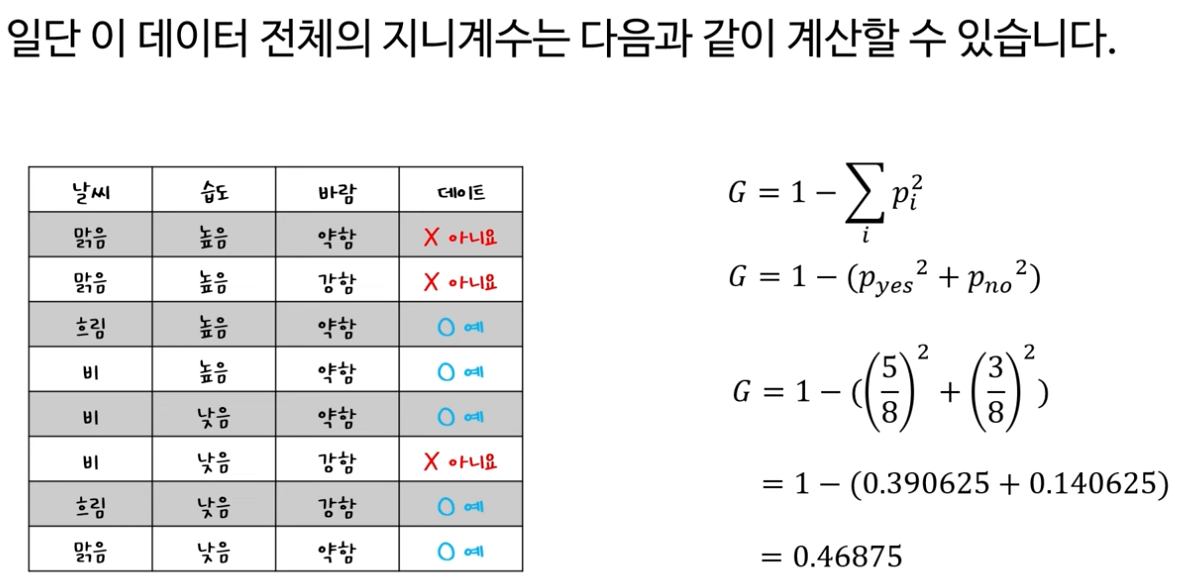 의사결정나무를 통해 지니계수를 낮추는 것이 알고리즘의 목표입니다.