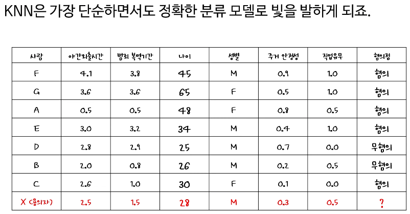 KNN은 이웃을 보고 판단하는 모델인데, 이 이웃이라는 개념이, 수사에서도, 추천 시스템에서도, 의료에서도 실제로 쓰이고 있습니다.