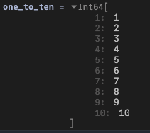 one_to_ten[[1, 3, 5]] # index values at specific positions 1, 3, 5