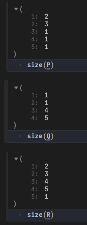 배열 의 는 size차원의 튜플입니다. 벡터의 경우, 다음 길이를 포함하는 싱글톤 튜플을 반환합니다.