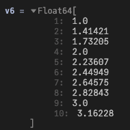 v7 = [sqrt(x) for x in 1:10 if x % 2 == 0]