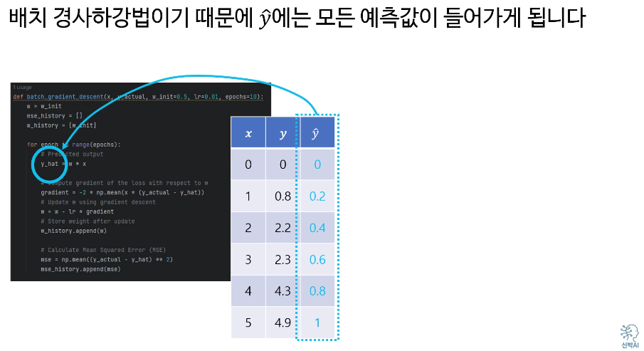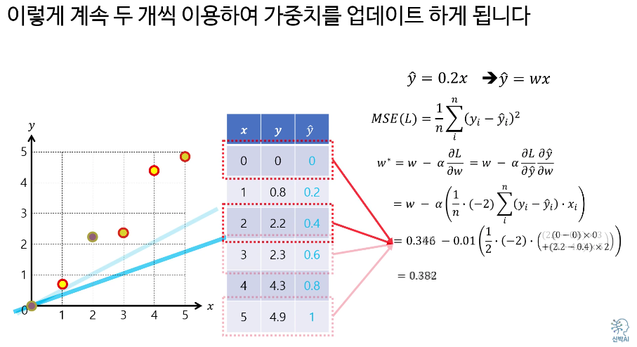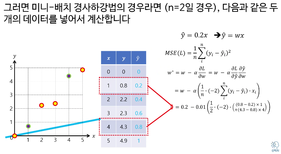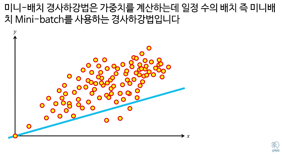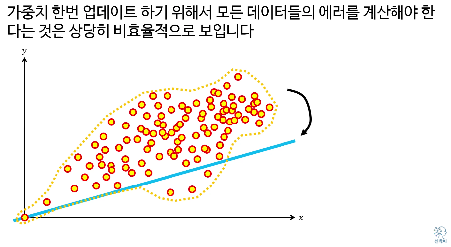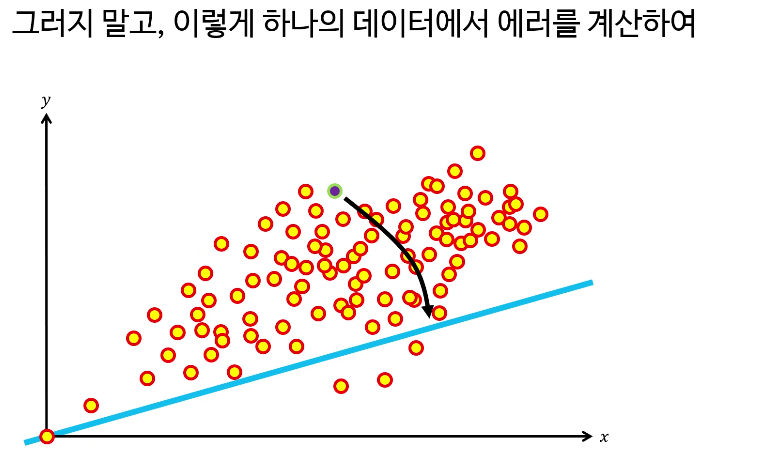 예를 들면, 5개의 데이터를 선정해서 에러를 계산한 다음, 5개의 평균 에러값을 사용하여 기울기를 업데이트 한다.