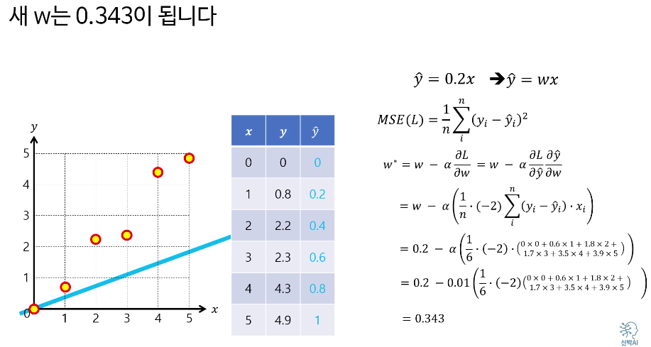 그리고 새로운 w인 0.272를 사용하여 계산을 이어간다.