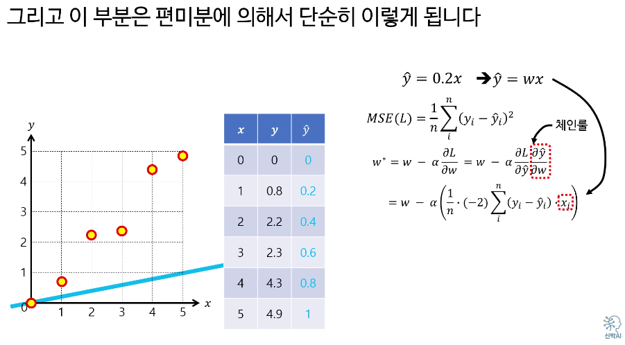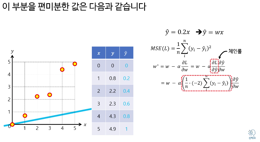 여기서 $w$는 가중치, $\eta$는 학습률(learning rate)입니다.