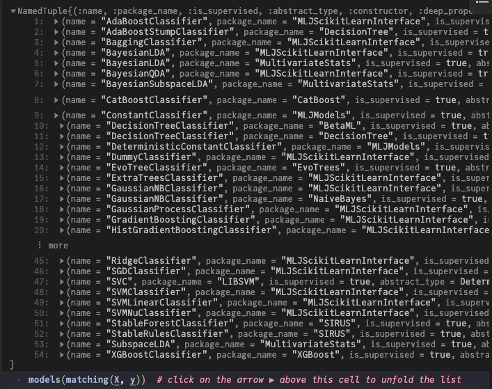 models(matching(X, y)) # click on the arrow ▶ above this cell to unfold the list