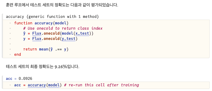 요약하면, Xavier 초기화는 신경망 가중치를 각 층의 입력과 출력 노드 수에 기반하여 적절한 분산을 가진 분포에서 무작위로 초기화함으로써 학습 안정성 및 효율성을 높이는 기법입니다.이로써, 4주간의 줄리아 프로그래밍 공부가 막을 내렸습니다.