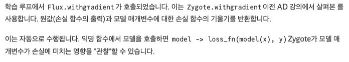 학습 루프에서는 학습 데이터의 배치를 반복해야 합니다. Flux는 이러한 반복자를 . 형태로 제공합니다 Flux.DataLoader.