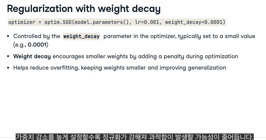 weight_decay는 손실 함수에 패널티를 추가합니다.