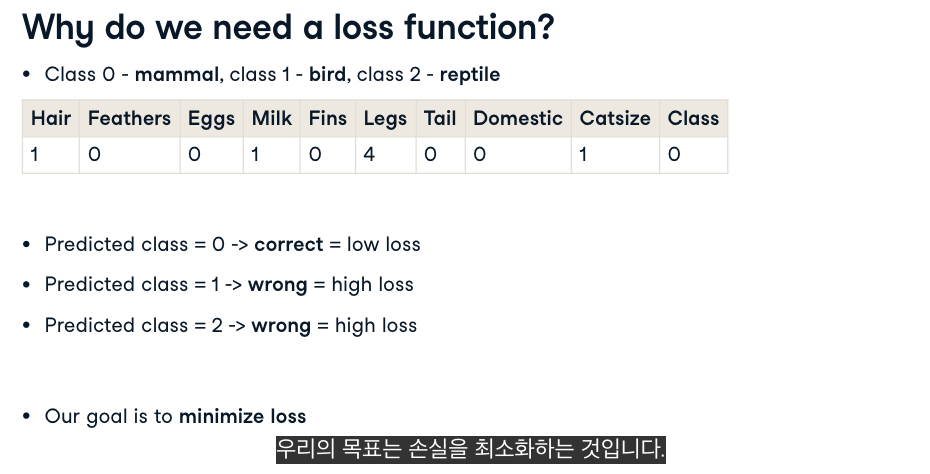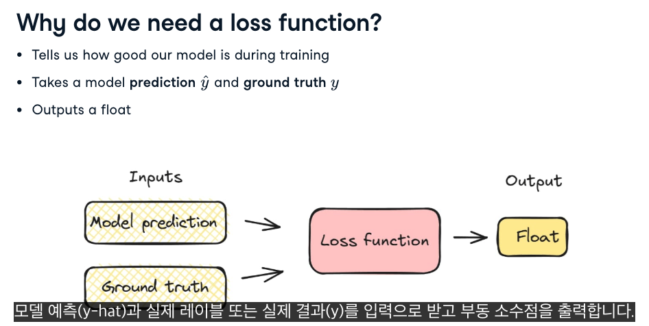 - calculate loss는 단순히 예측이 얼마나 틀렸는지 수치적으로 나타내는 것.