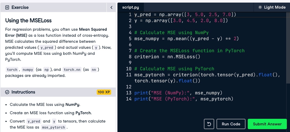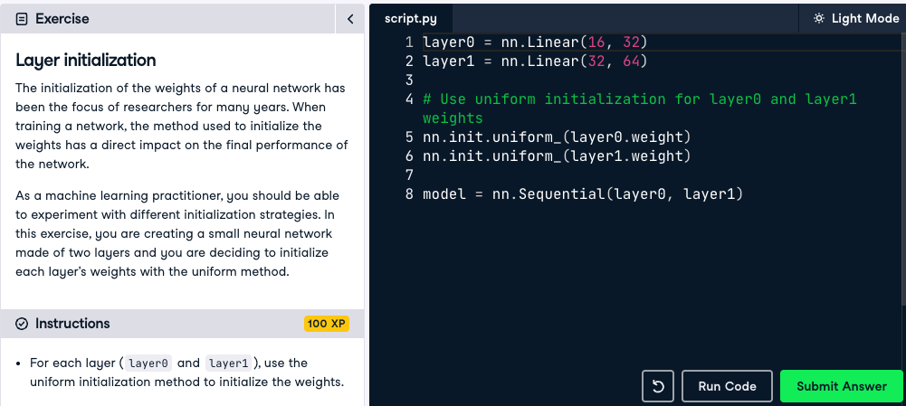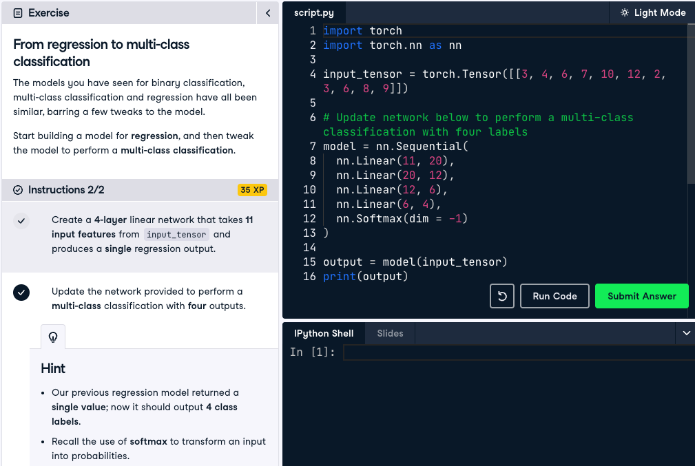 자율주행차, 스마트폰, 검색 엔진... 딥러닝은 이제 어디에나 있습니다. 복잡한 모델을 구축하기 전에 딥러닝 프레임워크인 PyTorch에 익숙해질 것입니다. 텐서를 조작하고, PyTorch 데이터 구조를 생성하고, PyTorch에서 선형 레이어를 사용하여 첫 번째 신경망을 구축하는 방법을 배우게 됩니다.
