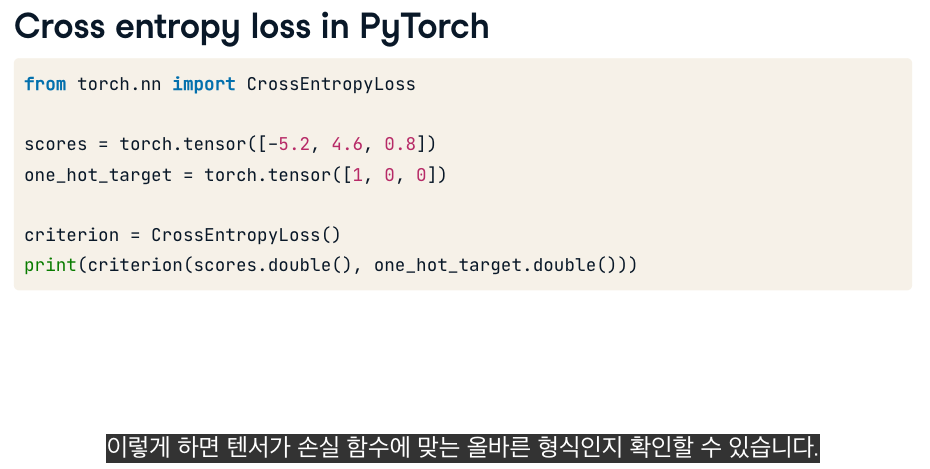 from torch.nn import CrossEntropyLoss # 교차 엔트로피 손실 함수 클래스를 import합니다.