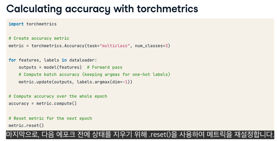 이를 측정하기 위해 torchmetrics를 사용합니다.