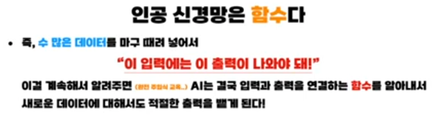 요약하면, 이 강의는 “곱하고 더하고 활성함수 통과시키는 연산을 여러 층으로 반복하는 구조가 인공신경망이며, 학습이란 이 안의 가중치와 바이어스를 데이터에 맞게 자동으로 조정하는 과정”이라는 큰 그림을 비유를 통해 잡게 해 주는 내용입니다.