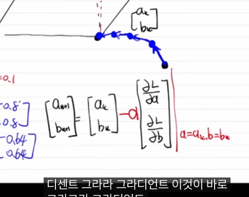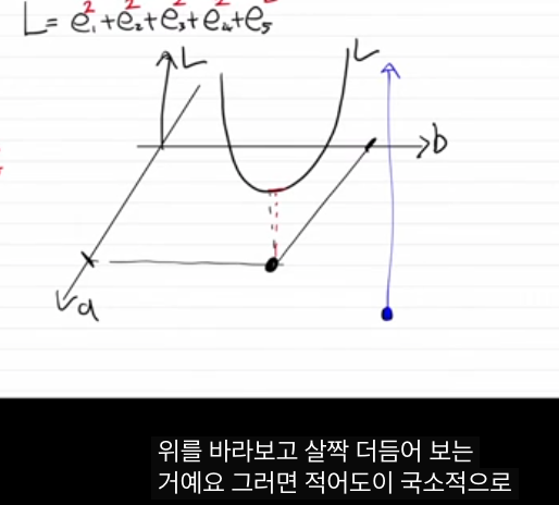 - 목표: L(a,b)를 최소화하는 a , b a,b 찾기