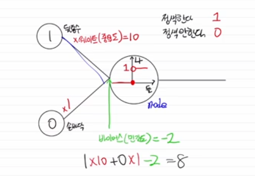 마지막으로 “그렇다면 인공신경망이 함수라면, 중학교 때 배운 1차 함수 y=ax+b도 신경망으로 만들 수 있지 않겠느냐?”라는 예를 듭니다.