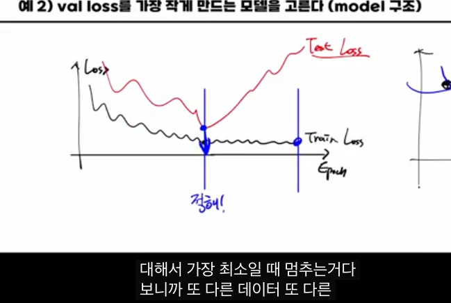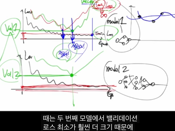 -- 가장 작은 validation loss를 가진 모델을 최종 모델로 선택합니다.