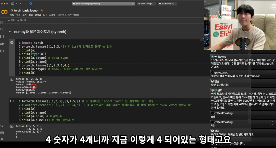 파이토치(PyTorch) 강의는 딥러닝 프레임워크의 핵심 개념을 실습 중심으로 다루는 시리즈입니다. 텐서의 기본 개념부터 고급 인덱싱, 그리고 신경망 구축에 필수적인 함수들까지 체계적으로 학습할 수 있어, 머신러닝·딥러닝을 처음 시작하는 학습자에게 최적의 입문 과정이라 할 수 있습니다.