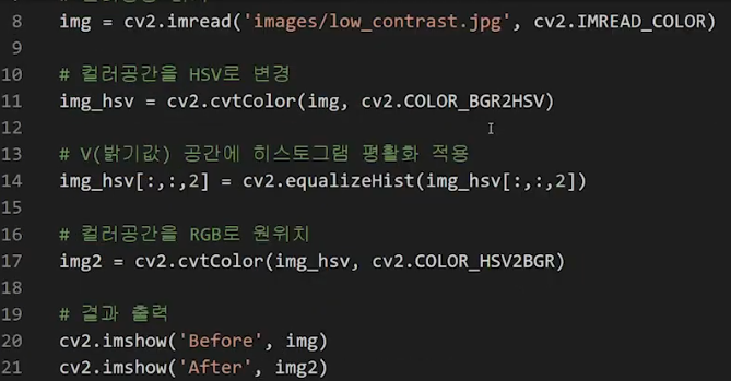 hsv[:,:,2]에서 2는 Value(명도/밝기) 채널을 가리켜요!